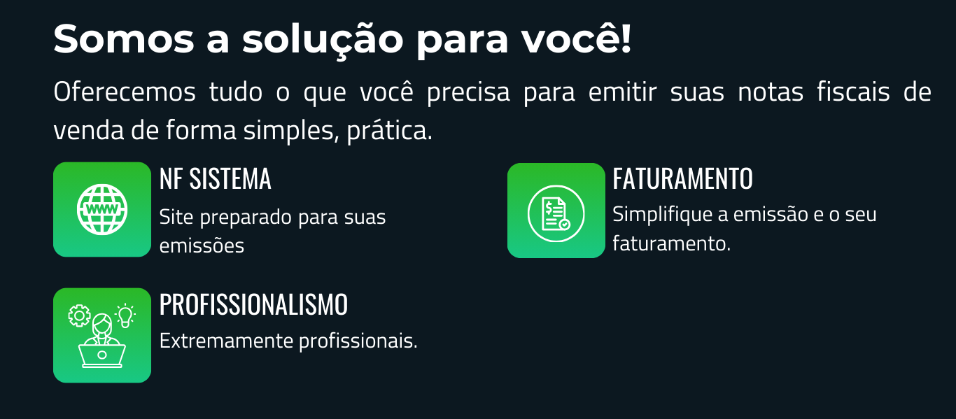 A NF SISTEMA ajuda sua empresa a emitir NFC-e, NF-e, NFS-e, NFP-e, CT-e e MDF-e com mais controle, conformidade e agilidade no dia a dia.